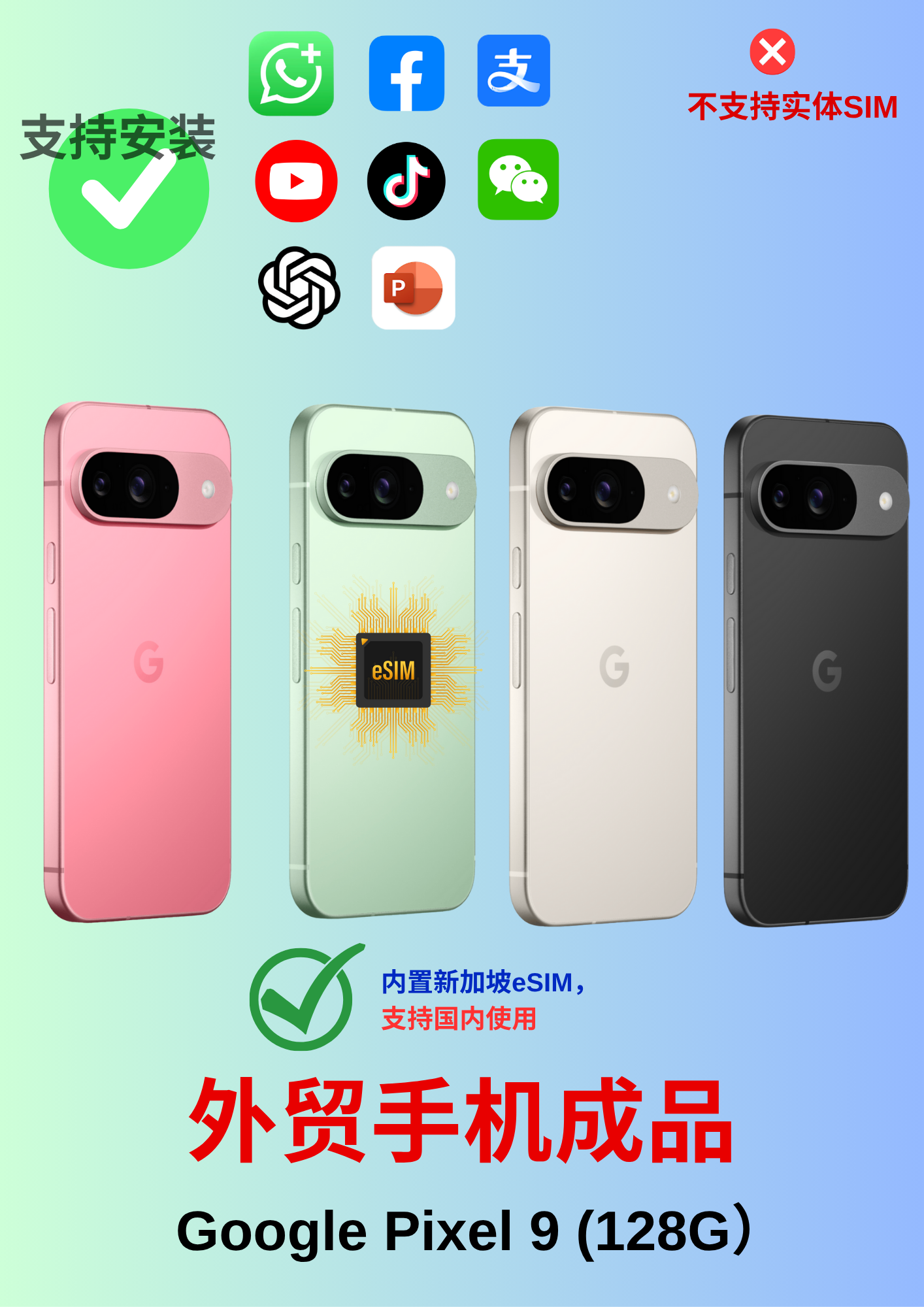 Google Pixel 9 (美版eSIM) | 128G | 外贸商务专用 | 完美支持中国 4G/5G