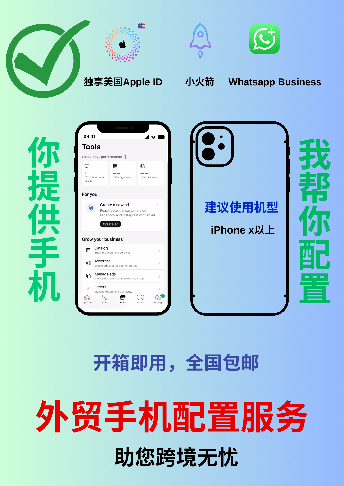 外贸手机配置服务 (iPhone/iOS) | 国际应用环境搭建 | 独享美国Apple ID/WhatsApp/Shadowrocket