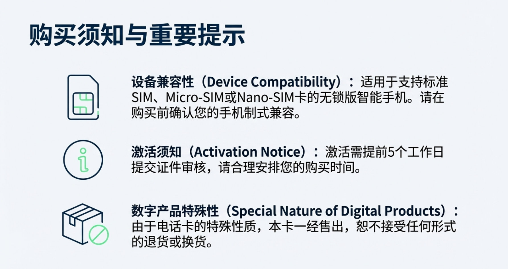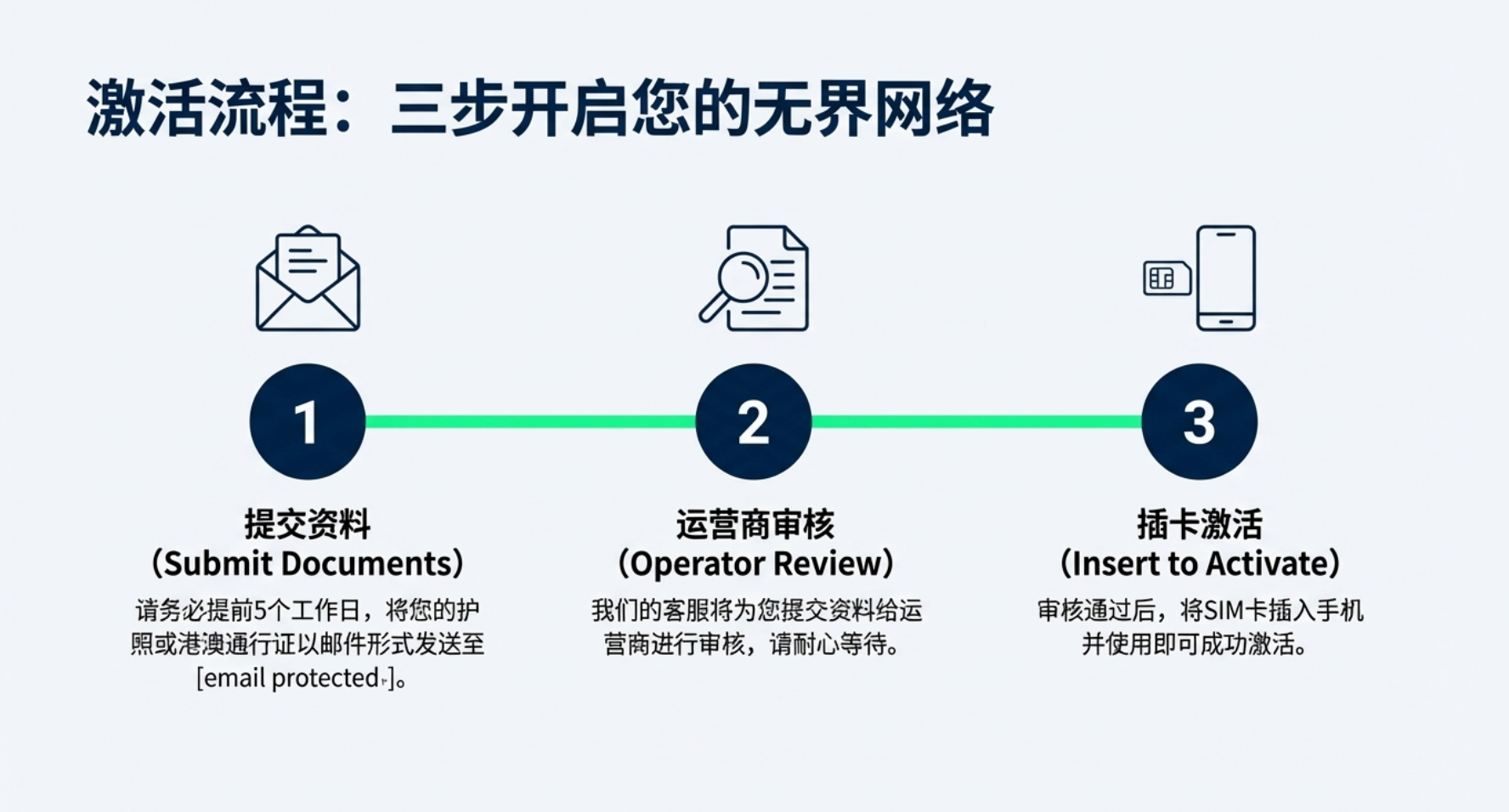 国际通讯与客户服务无忧: 通过WhatsApp、LINE等工具与海外供应商、物流伙伴及终端客户进行稳定、无障碍的即时通讯,确保您的订单处理、售后服务高效流畅。本卡还具备强大的全球漫游能力,是您国际出差、参展的理想通讯保障。