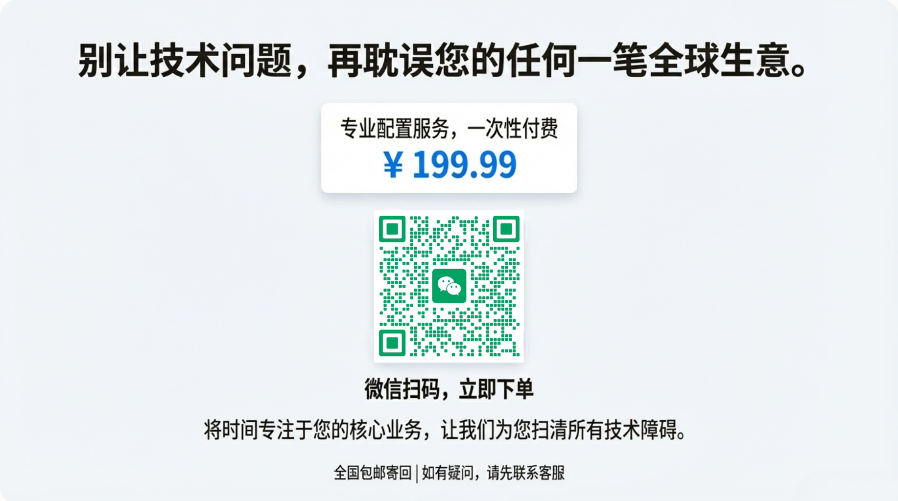 立即下单,告别繁琐设置,将时间专注于您的外贸业务!